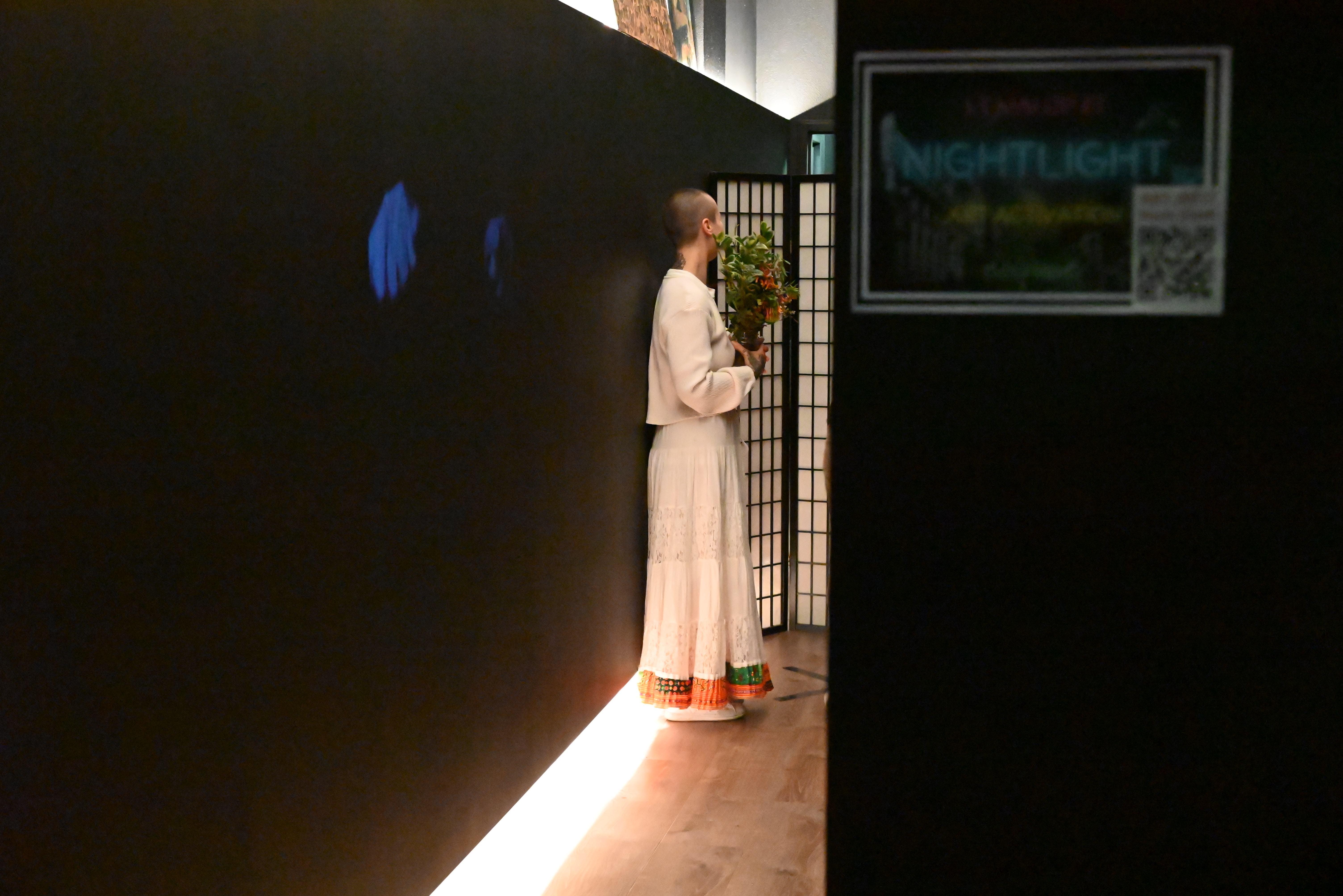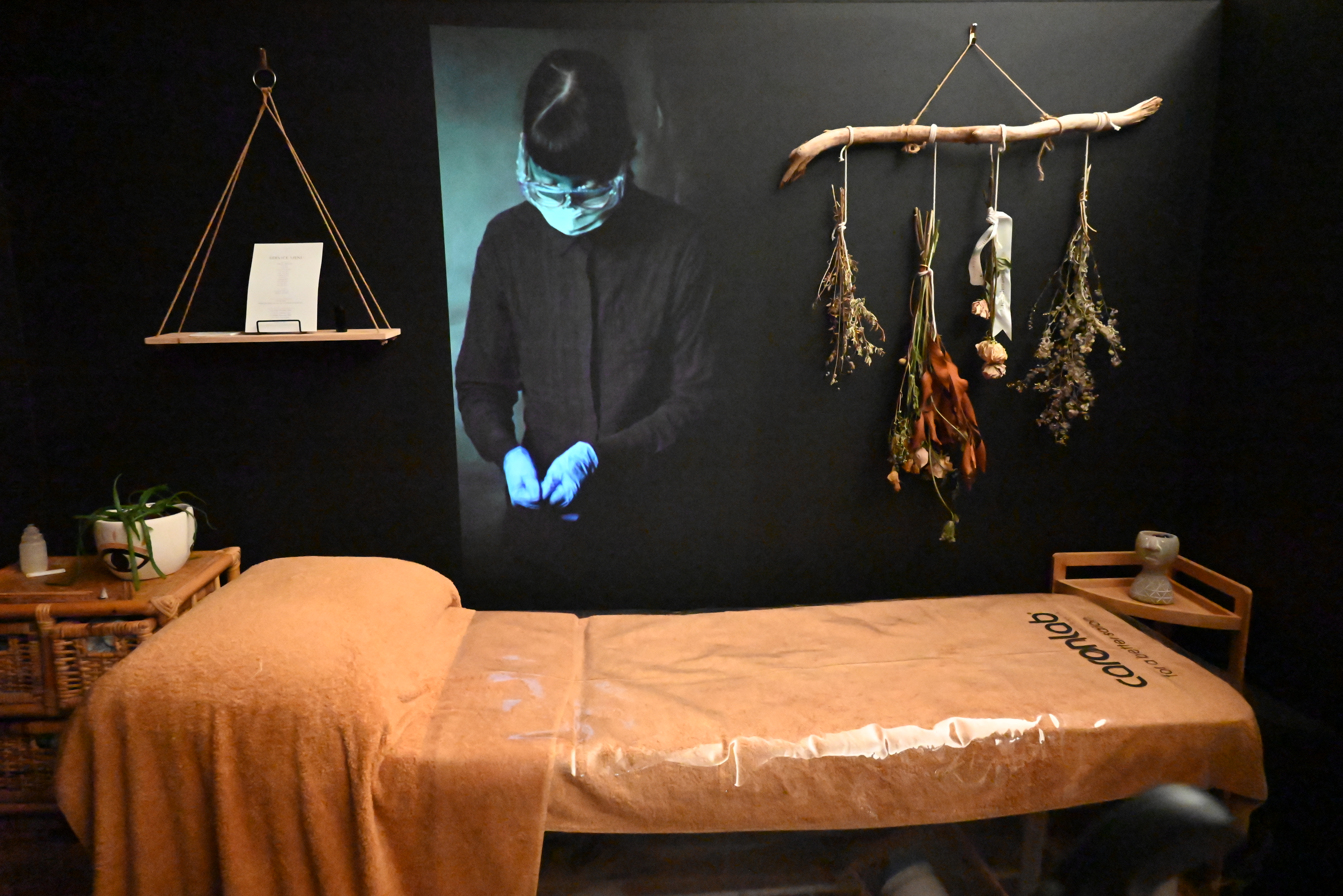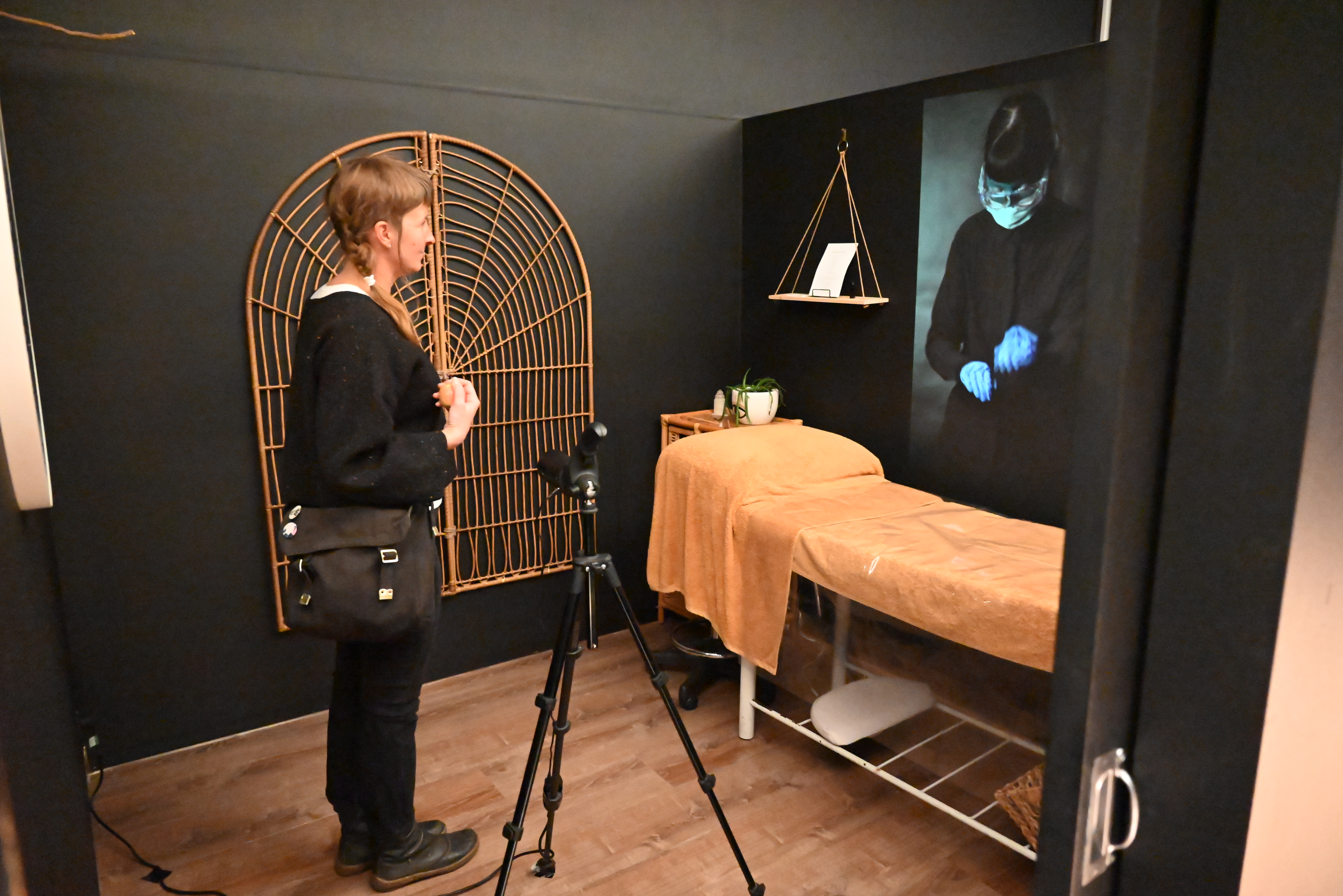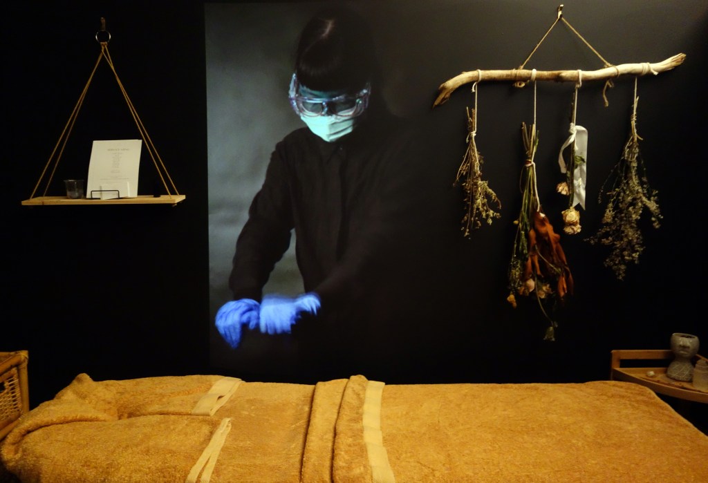 Hands-on, after the distance (2021) was first shown as a site specific performance video installation at Omega Holistic, Little Malop St. Geelong, as part of the NightLight art activation on June 11 2021. The work was shown directly after the fourth major Victorian lockdown arising from the COVID-19 pandemic that began in 2020; it was next installed and exhibited at the Victorian College of the Arts, Artspace Gallery, Melbourne in July 2021. The exhibition was cut prematurely short due to the fifth major lockdown in the state, which was an ironic and tacit convergence with the work’s artistic commentary on persisting with ideals of practice amidst rapidly reforming conditions.