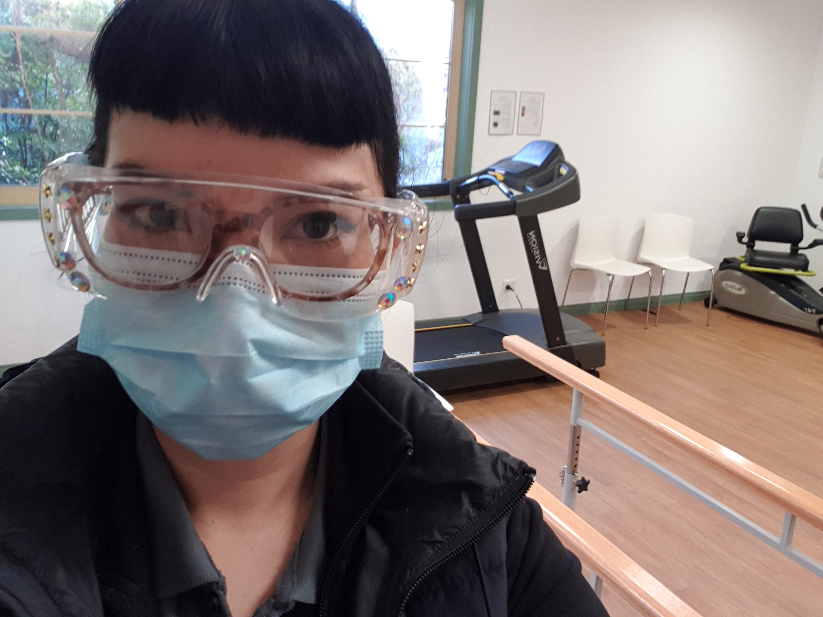 It comprises two video projections of a performance by artist and practicing physiotherapist Jessica Laraine Williams. The performance is constructed to appear as a disembodied massage treatment conducted remotely- an inherently absurd concept that dissects the notion of ‘hands-on’ practice in a socially-distanced world. Hands-on, after the distance, responds to the symbolic shifts in identity and practice that demarcate an extraordinary period of Australian pandemic time. A customised PPE visor and sterile blue are among the artist’s characteristic identifiers in her regular clinical work. They are enshrined through focal use of colour in the artworks.