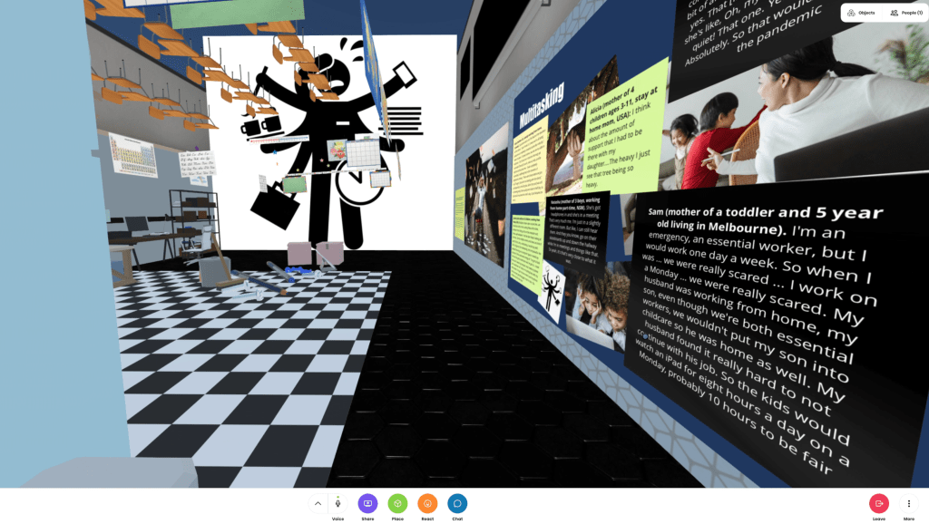 As a research fellow at the ARC Centre of Excellence for the Digital Child, based at Deakin University, my role on the Pandemic Parenting project is to provide new insights into the use of digital and designerly technologies for data-driven creative research outputs. The video showcase provides an overview of the metaverse research exhibit that I collaboratively built in Mozilla Hubs.