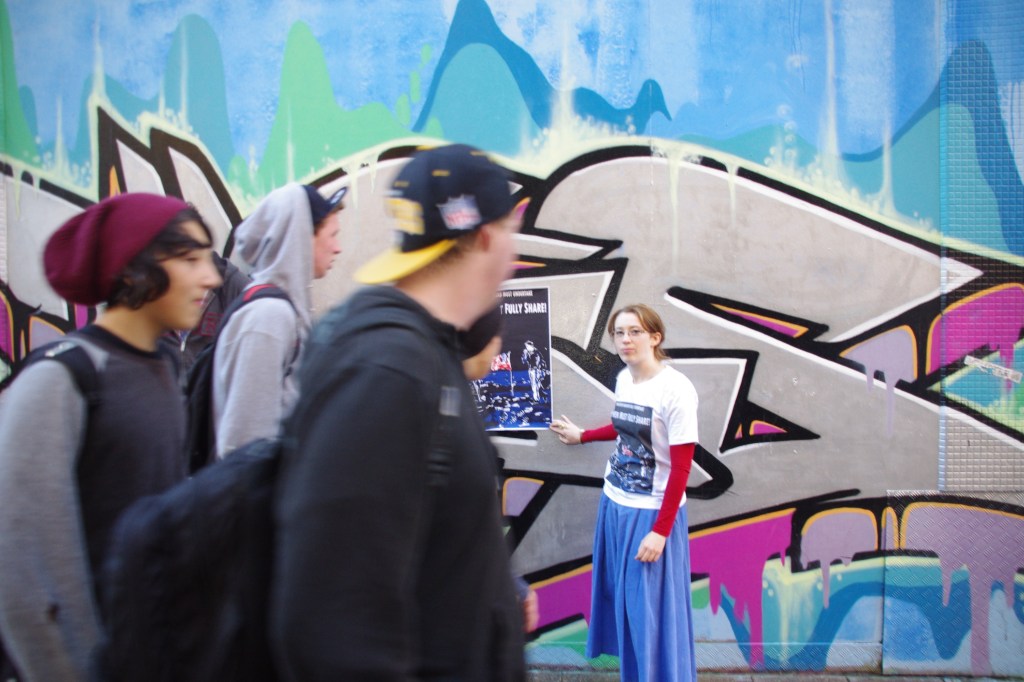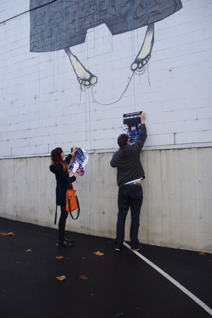 Wolves on Wall Street (2013) paste up installation of linocut prints across multiplesites in Melbourne and Geelong, Australia.